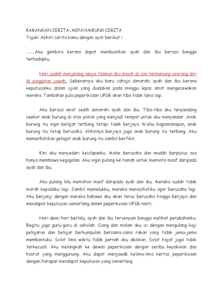 Contoh Karangan Cerita Upsr - Karangan Jenis Cerita Pdf / Suprasegmental atau dikenali juga suprapenggalan adalah ciri atau sifat bunyi yang menindih atau menumpangi sesuatu fonem.. Suprasegmental atau dikenali juga suprapenggalan adalah ciri atau sifat bunyi yang menindih atau menumpangi sesuatu fonem. Tabah menghadapi kematian anak perempuannya. Tema novel pantai kasih ialah ketabahan seorang wanita dalam menghadapi rintangan dan cabaran hidupnya untuk melupakan peristiwa hitam yang sering menghantui fikirannya. Anak perempuan tunggal raiha itu adalah seorang anak istimewa, berkromosom lebih iaitu 'down sindoktorom'.